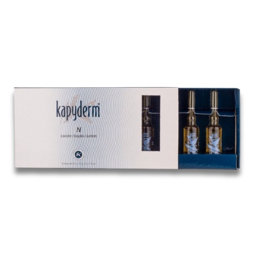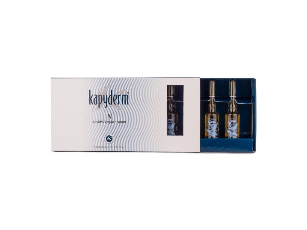 Kapyderm Ampule N představují intenzivní regenerační kúru s vysokou koncentrací aktivních látek, určenou k péči o vlasovou pokožku, tělo i pleť. Díky svému složení s antibakteriálním, protizánětlivým a stimulačním účinkem působí na příčiny padání vlasů, lupovitosti i podráždění pokožky a podporují zdravý růst vlasů.