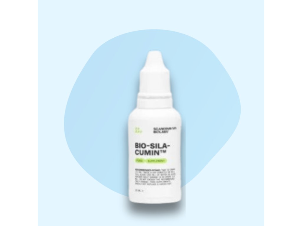 Tento tekutý doplněk Bio- Silacumin®, který využívá vysoce vstřebatelnou formu křemíku (ch-OSA) spolu se zinkem a selenem. má převážně neutrální chuť, díky čemuž je všestranným doplňkem jakéhokoli studeného nápoje. Je navržený s ohledem na zvýšenou absorpci podporuje zdraví vlasů. Obsahuje až 1% kyseliny ortho- křemičité (OSA). Tato kyselina je jedinečným biologicky dostupným zdrojem křemíku, který hraje klíčovou roli ve vnitřní produkci kolagenu v těle. Dále obsahuje bioaktivní sloučeniny a antioxidanty kurkumy, které dodávají vlasům extra podporu. Dále obsahuje bioaktivní sloučeniny a antioxidanty kurkumy, které dodávají vlasům extra podporu. Bio- Silacumin je čistě na rostlinné bázi. Můžete ho také kombinovat s vyživujícími vlasovými vitamíny, které také podporuje zdraví měkkých tkání, oba produkty fungují na základě rozdílných látek a vzájemně se doplňují.