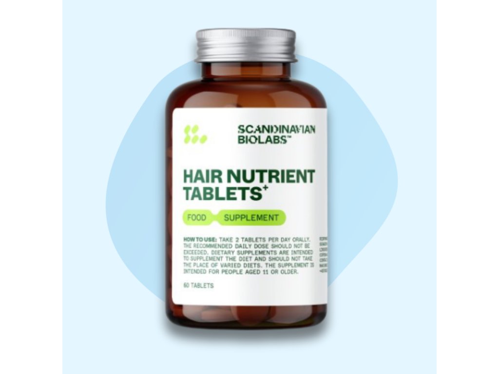 Tablety pro výživu vlasů od Scandinavian Biolabs je unikátní komplex látek určených pro péči k lepšímu a zdravýmu růstu vlasů. Vyvážená směs účinných látek, vitamínů a minerálů působících od kořínky vlasů po konečky. Tato formule byla vyvinuta ve spolupráci s dánským laboratořím a zaměřena na vegetariány/vegany, kteří hledají výživový doplněk s jasným zaměřením na vlasy. Každá tableta obsahuje promyšlenou kombinaci výtažků – výtažek z přesličky, který je bohatý na křemík a napomáhá udržení zdravých vlasů, kůže a nehtů. Dále je vitamínový komplex obsahuje výtažek z jablka, který je zdrojem polyfenolů a dalších antioxidantů, jež podporují vlasovou epitelovou buňku a mohou stimulovat růstovou fázi anagenu. Další hlavní složkou je zinek, který přispívá k normálním vlasům a podpoře buněčné aktivity. Kromě těchto složek obsahuje komplex esenciální aminokyseliny (např. L-Cystein, L-Methionin), vitamíny B a vitamín C, které dohromady pracují na posílení vlasového vlákna, redukci oxidačního stresu a podporují zdravý stav vlasové pokožky.