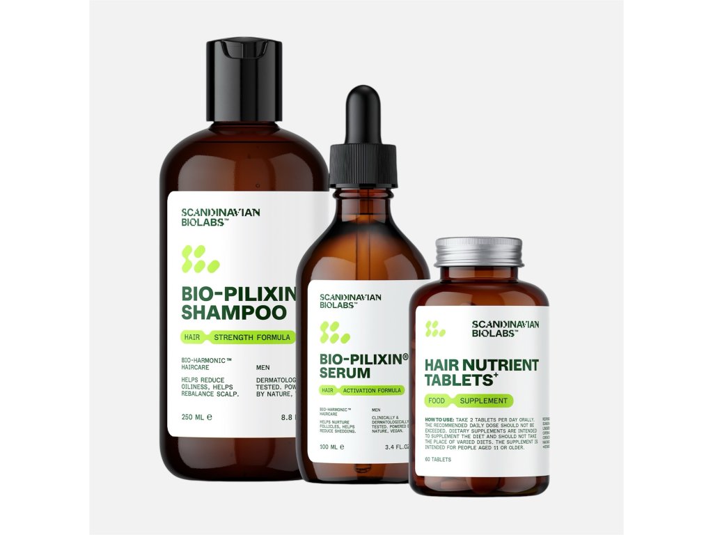 Scandinavian Biolabs Bio-Pilixin® Shampoo z řady pro muže spojuje přírodní a vědecky podložené aktivní látky pro podporu růstu vlasů, posílení vlasového vlákna a ochranu vlasových folikulů.